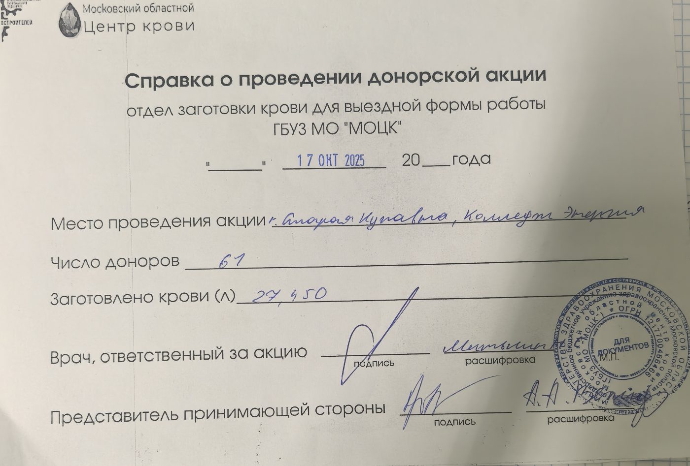 17 октября в Старой Купавне прошел День донора. Участниками акции, проходившей в рамках программы «Корпоративный донор Подмосковья» Московского областного РО СМР и Московского областного центра крови, стали студенты и преподаватели одного из структурных подразделений колледжа «Энергия».