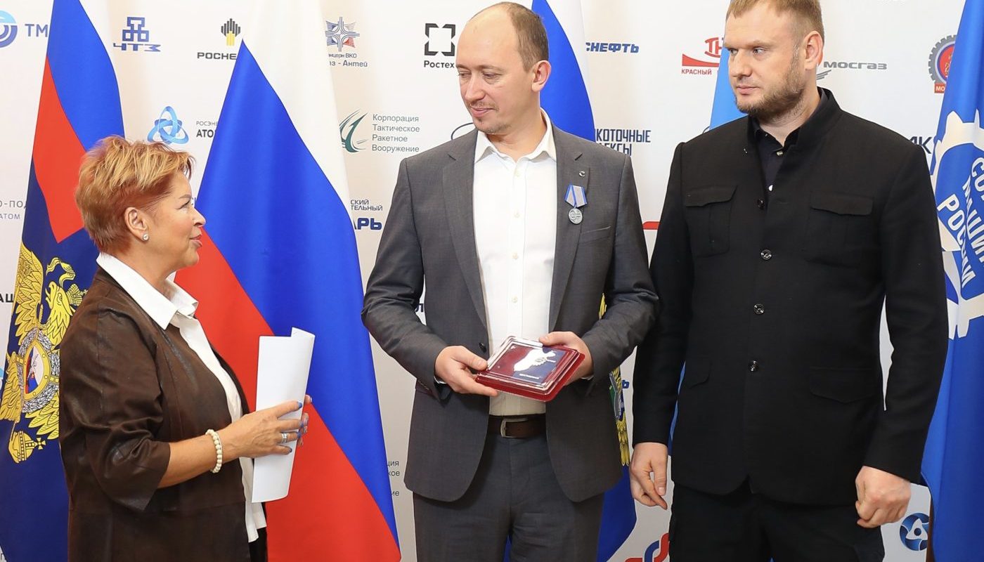28 октября на базе раменского ВЕКПРОМ состоялась церемония вручения наград Союза машиностроителей России. Из рук помощника Генерального директора – руководителя службы социального развития АО «ВПК «НПО машиностроения» Ольги Барминовой медаль «За доблестный труд» II степени принял руководитель Московского областного центра крови Глеб Марнов.