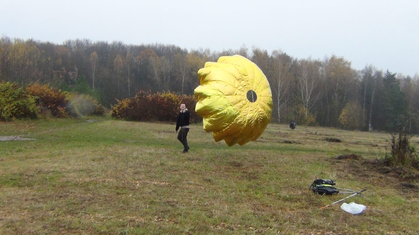 Команда успешно провела предварительные испытания парашюта, предназначенного для посадки самолета-первой ступени. Будущие инженеры также обсудили с руководителем схему расчета посадки с целью дальнейшего выбора проектных параметров посадочного устройства.