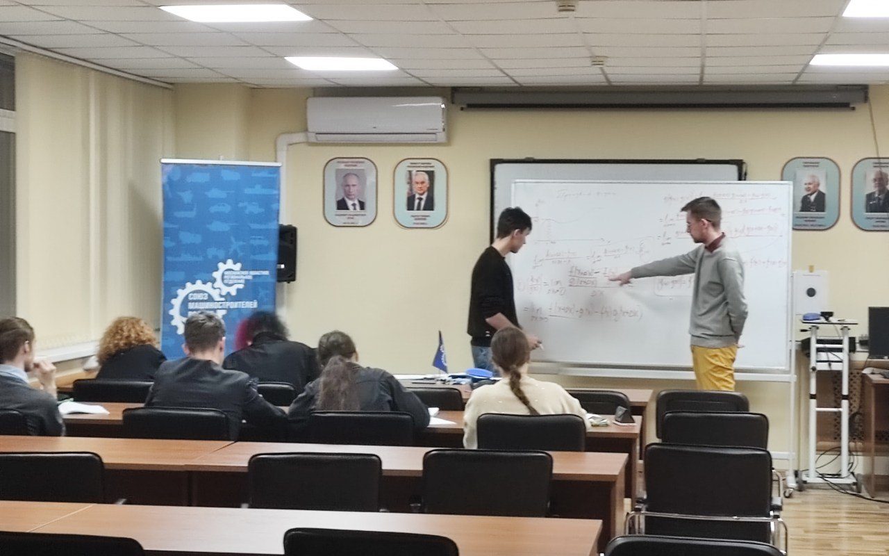 28 ноября один из лидеров молодежного крыла Московского областного реготделения СоюзМаш Артем Колпаков провел занятие по математике для учащихся одиннадцатых классов. Лекция проходила в НТЦ им. В.Н. Челомея в рамках соглашения о сотрудничестве между Московским областным РО СоюзМаш и Минобразования Подмосковья.