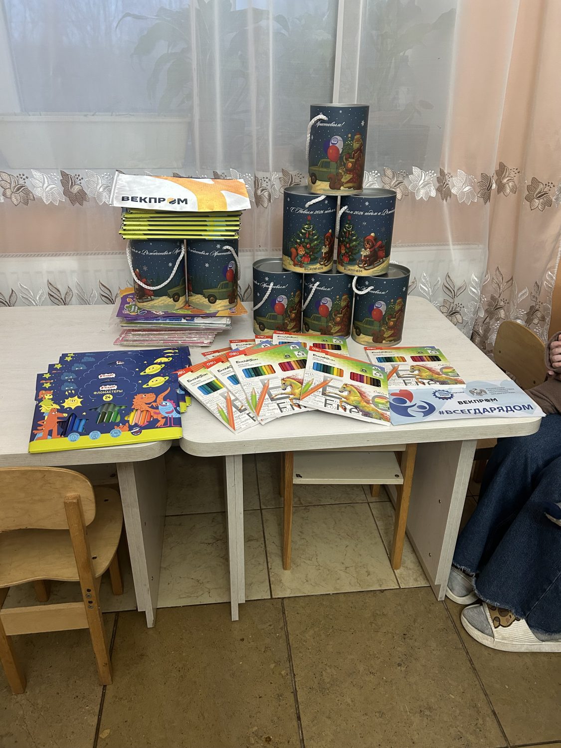 Команда во главе с заместителем Генерального директора компании «Векпром» Евгением Литвиновым привезла игрушки, сладости, наборы для творчества: дети очень обрадовались этому маленькому новогоднему чуду.