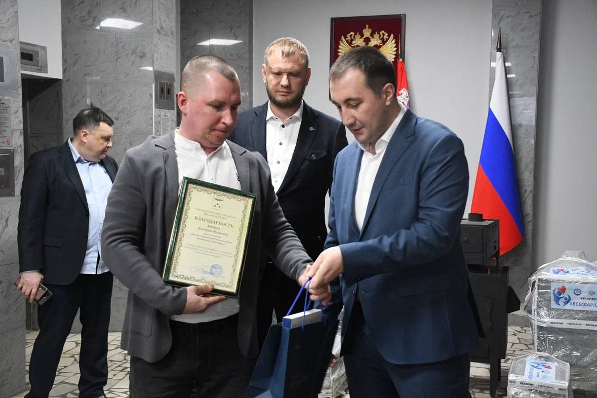 28 января представители ООО «ПГ «Векпром» во главе с его директором Вадимом Фроловым в рамках акции Союза машиностроителей России и Лиги содействия оборонным предприятиям «Всегда рядом» передали в пункт сбора помощи партию печей, изготовленных на предприятии. Представителей компании встретил глава Жуковского Андроник Пак – он поблагодарил их за вклад в общее дело и вручил нескольким специалистам фирмы благодарственные письма.