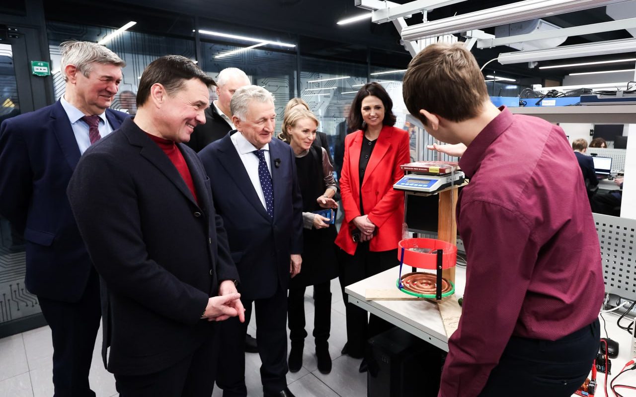Андрей Воробьев и Николай Волобуев также ознакомились с образовательной моделью, которую реализует технопарк. Ее основная идея – создание системы подготовки кадров «школа – опорный вуз – предприятие». Обучение начинается с 7 класса – курсы по программированию на разных языках, проектированию радиоэлектронных изделий, схемотехнике, системам «умного» дома, химии, материаловедению. С 10-11 класса добавляются стажировки и проектная работа. А после окончания программы выпускники технопарка могут получить дополнительные баллы при поступлении в РТУ МИРЭА и возможность работать в компаниях Ростеха.
