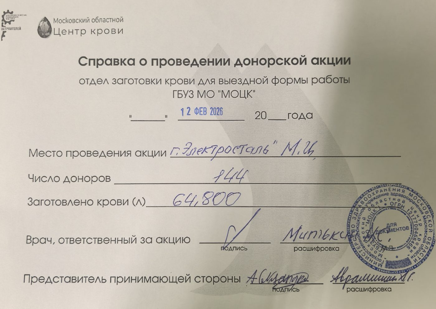 12 февраля в рамках программы «Корпоративный донор Подмосковья» в Молодежном центре г. Электросталь прошел День донора. Такие акции систематически проводит Московский областной центр крови совместно с Московским областным региональным отделением Союза машиностроителей России.