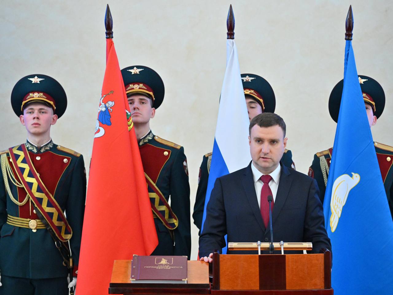 25 февраля в администрации г. о. Реутов состоялась церемония инаугурации главы города Алексея Ковязина. Участие в торжественном мероприятии приняли председатель Мособлдумы Игорь Брынцалов, член Регсовета Московского областного РО Союза машиностроителей России, Генеральный директор, Генеральный конструктор АО «ВПК «НПО машиностроения», Почетный гражданин Подмосковья и Реутова Герой Труда РФ Александр Леонов, представители руководства реготделения во главе с Валерием Бунаком, городские депутаты и общественники.