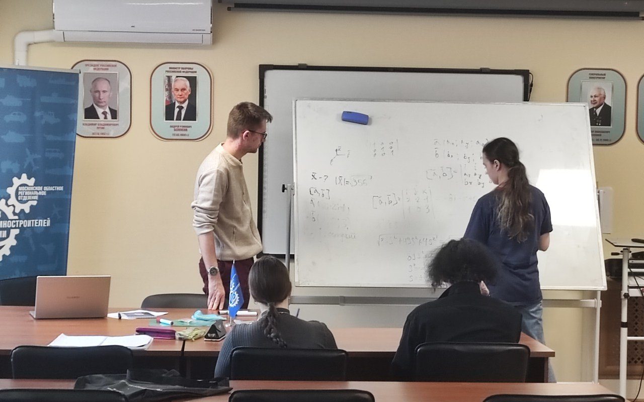 13 марта в Научно-техническом центре им. В.Н. Челомея прошло занятие по математике, организованное в соответствии с соглашением о сотрудничестве между Московским областным реготделением Союза машиностроителей России и Минобразования Подмосковья.